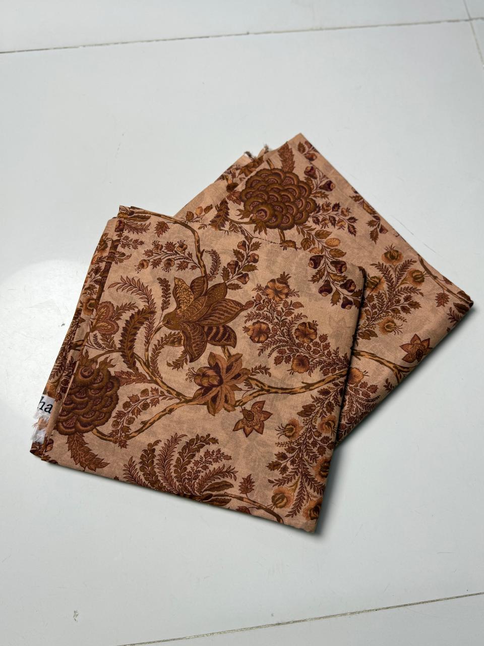Classic coffee beige base featuring detailed brown floral motifs and leafy vines